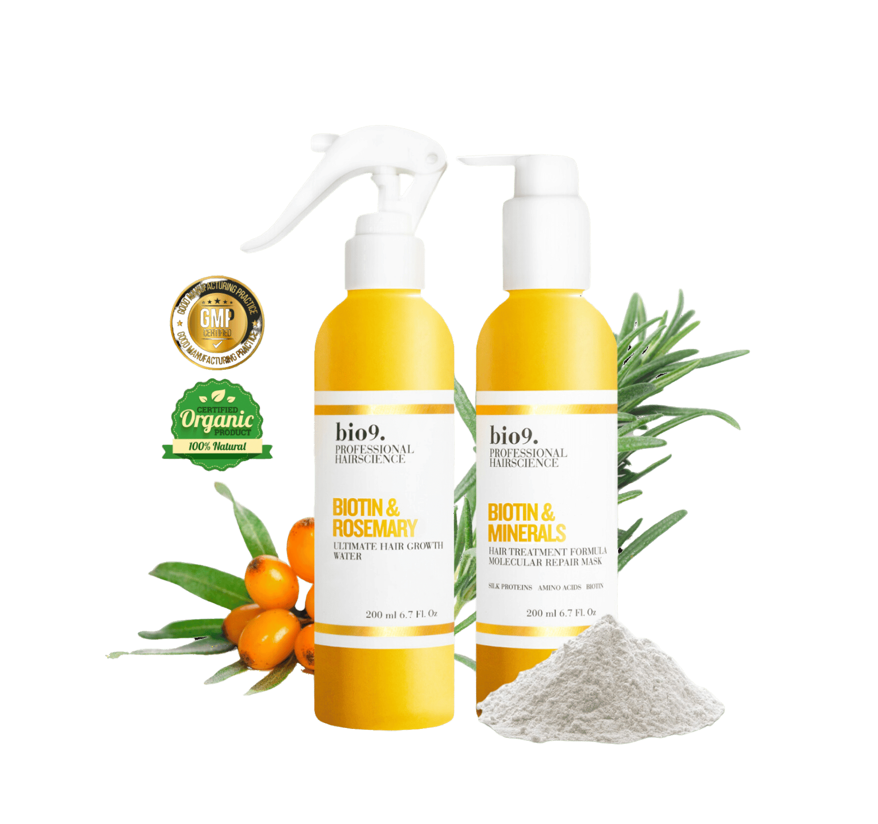Bio9 products are infused with a special mix of peptides, amino acids, silk proteins, rosemary, and biotin - each selected for their clinically proven effects on improving hair health and promoting growth.
